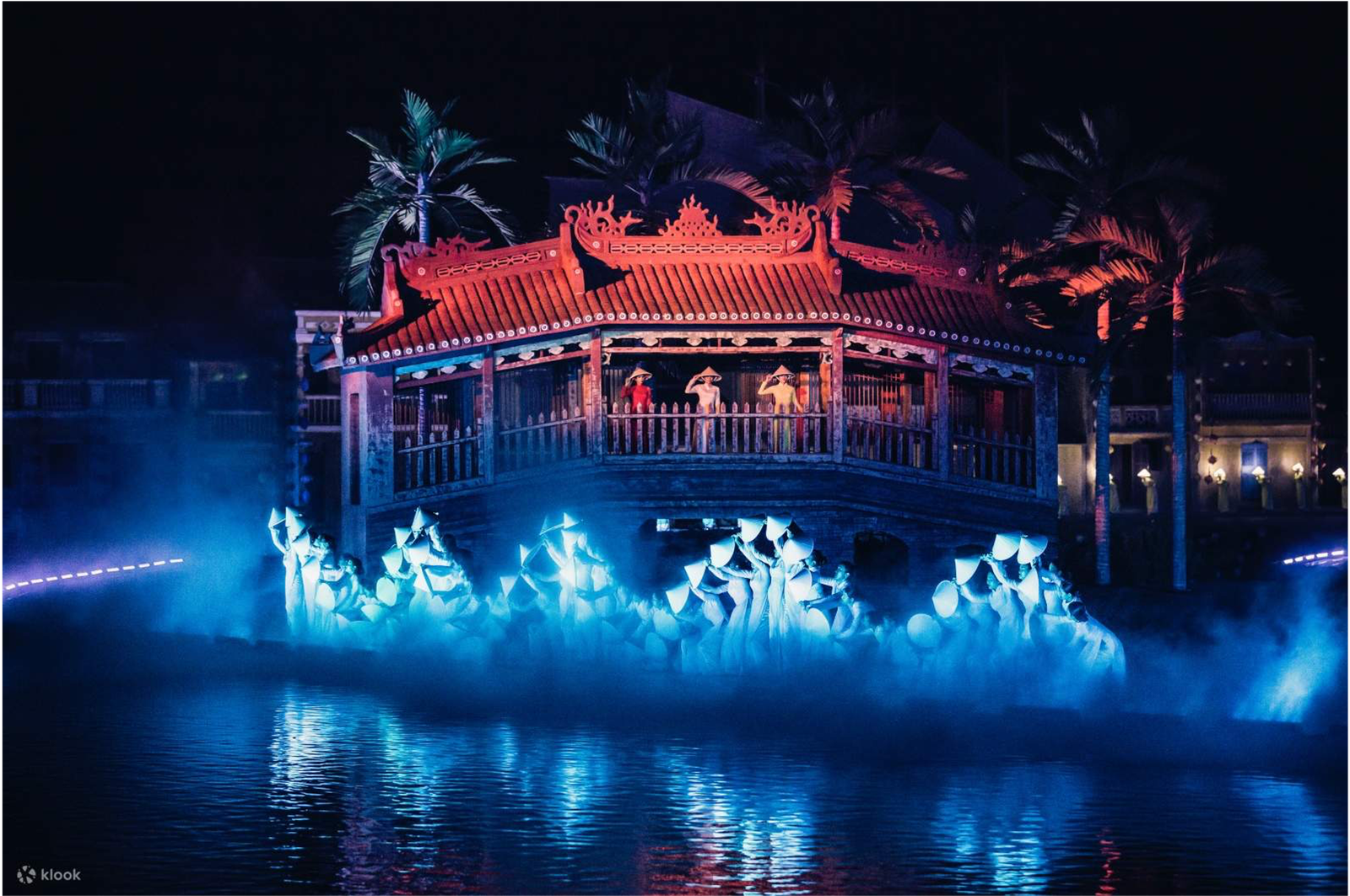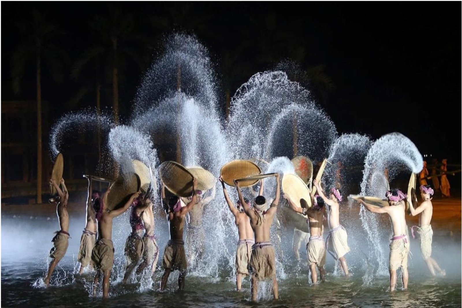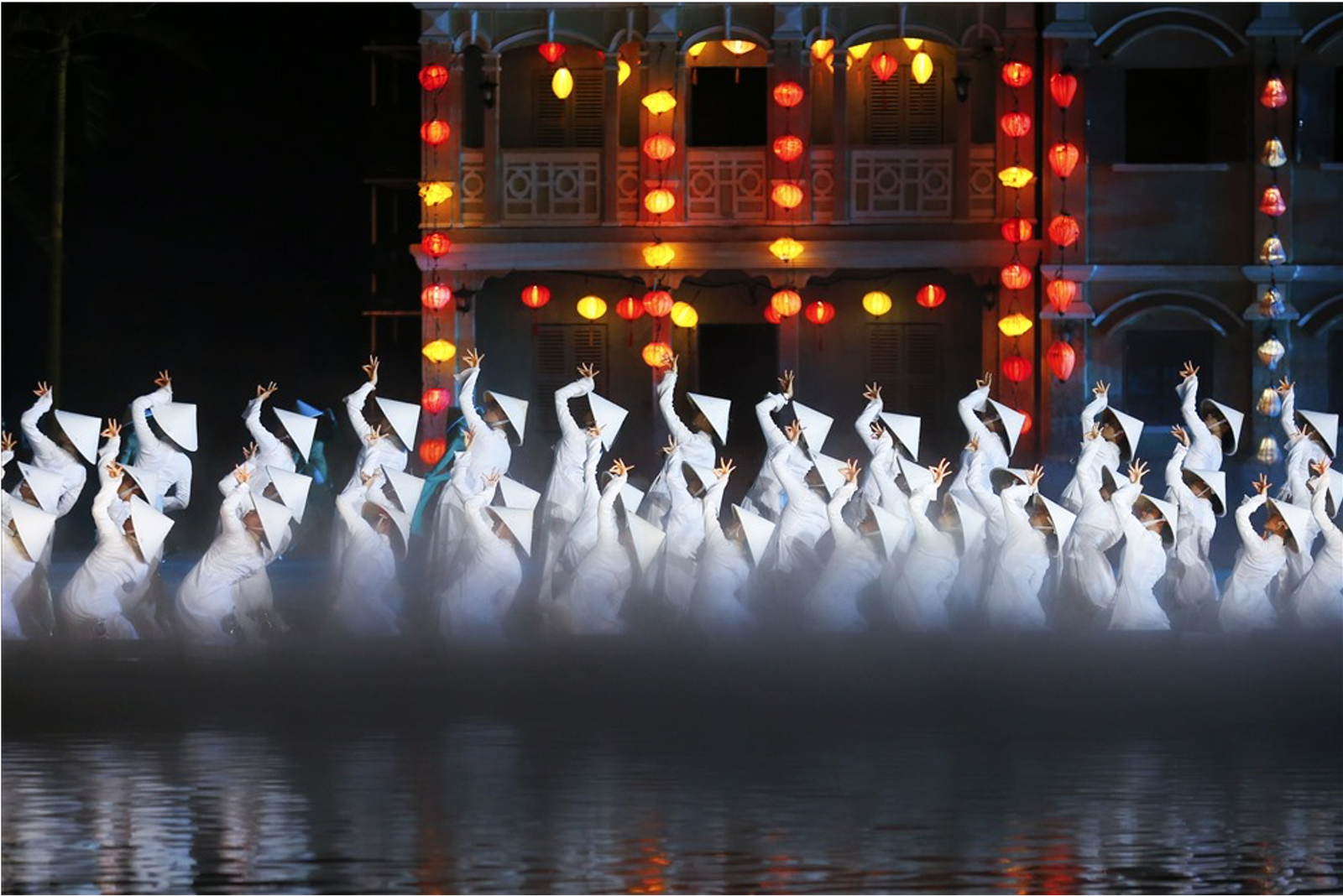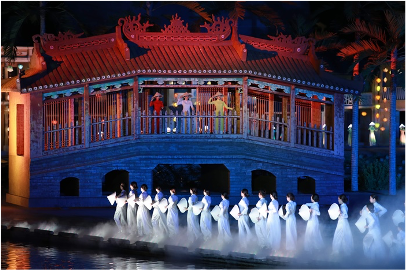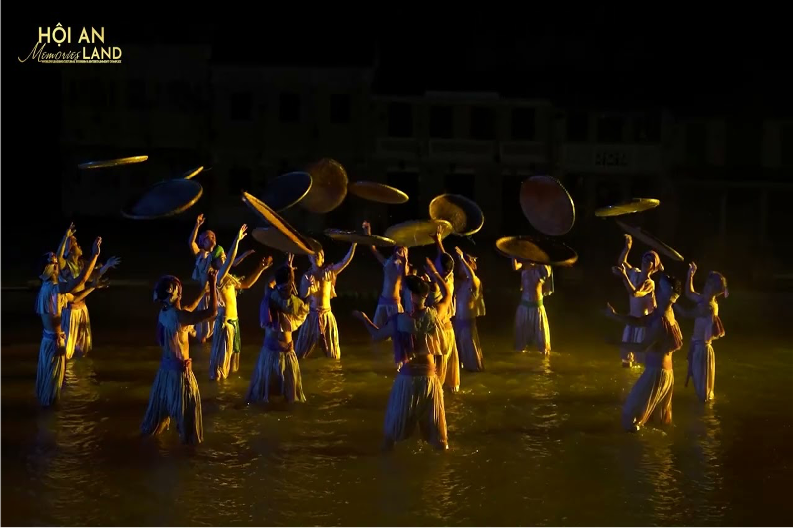 The set boasts massive movable props allowing the drama to evolve and develop along with the city. Lights also play a huge role with fleets of illuminated bicycles and conical hats, along with lengths of light rails built into the ground. This is the largest scale production of all the Hoi An cultural shows.