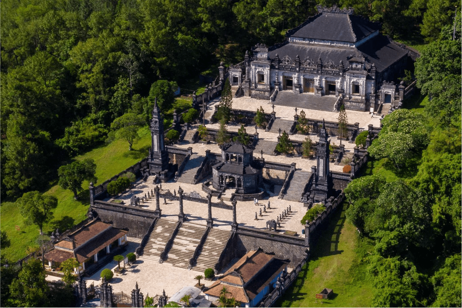 11:00   Arrive Hue and begin your sightseeing: visit one famous tomb of Khai Dinh among the most beautiful royal tombs of Nguyen Kings. Its architecture and atmosphere showcase elements of eastern art and western designs. Its architecture and