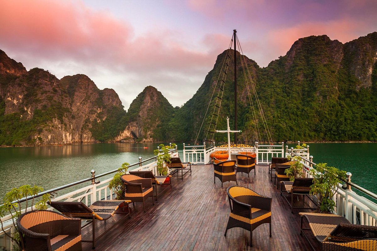 Pick up from Hanoi, cruise through Ha Long Bay, visit Surprising Cave, kayak at Luon Cave, and explore Titop Island. Overnight at hotel in Bai Chay.