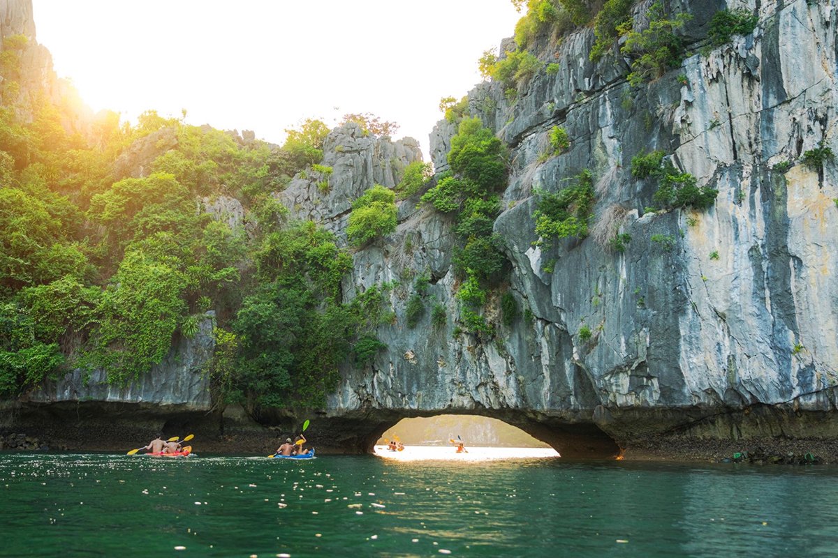 - Kayaking or bamboo boat at Luon Cave