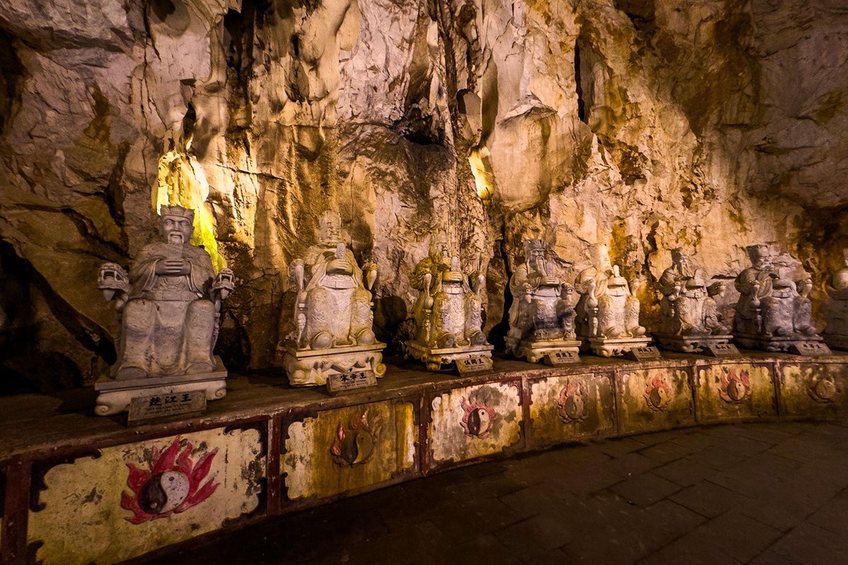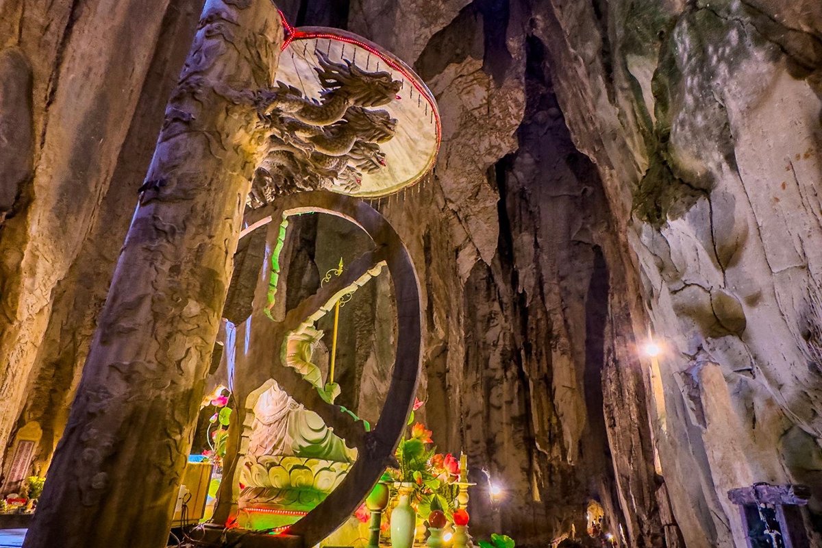 - Explore Marble Mountains with caves and temples